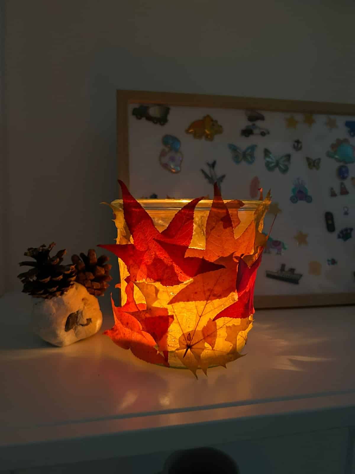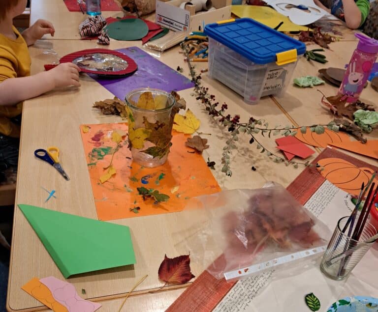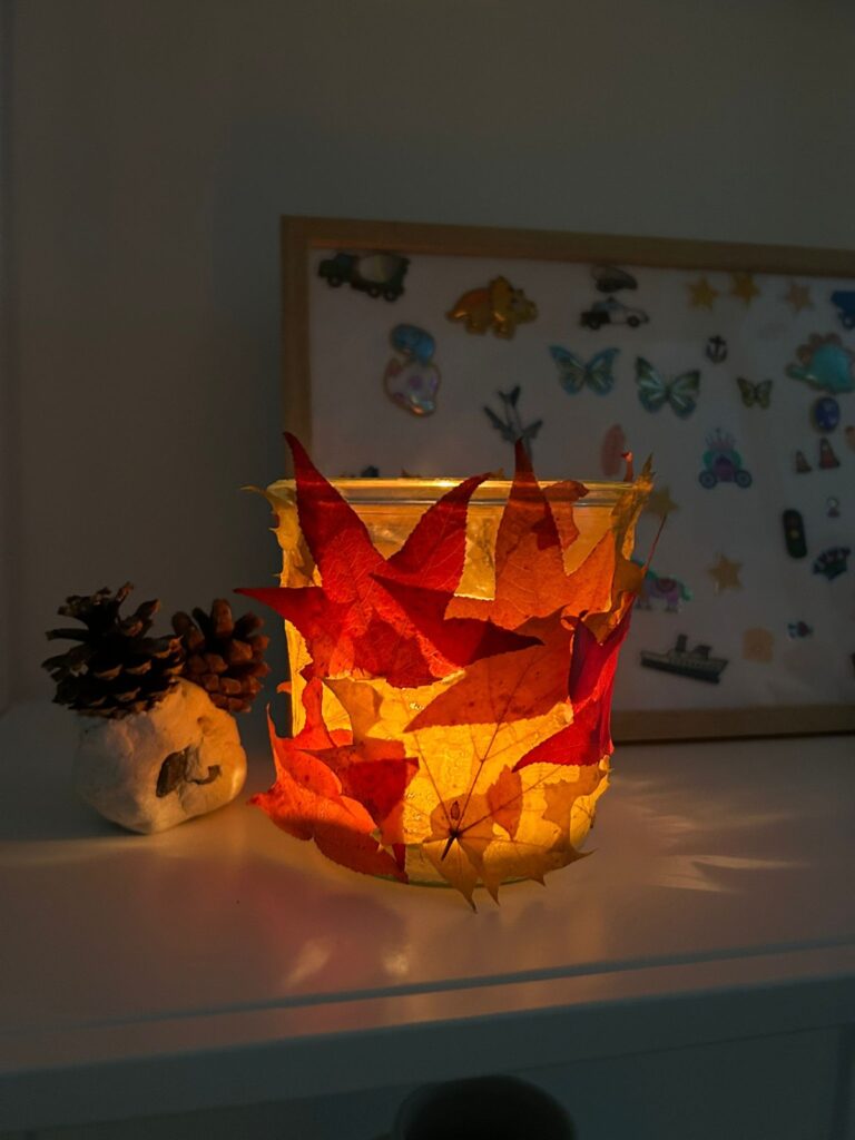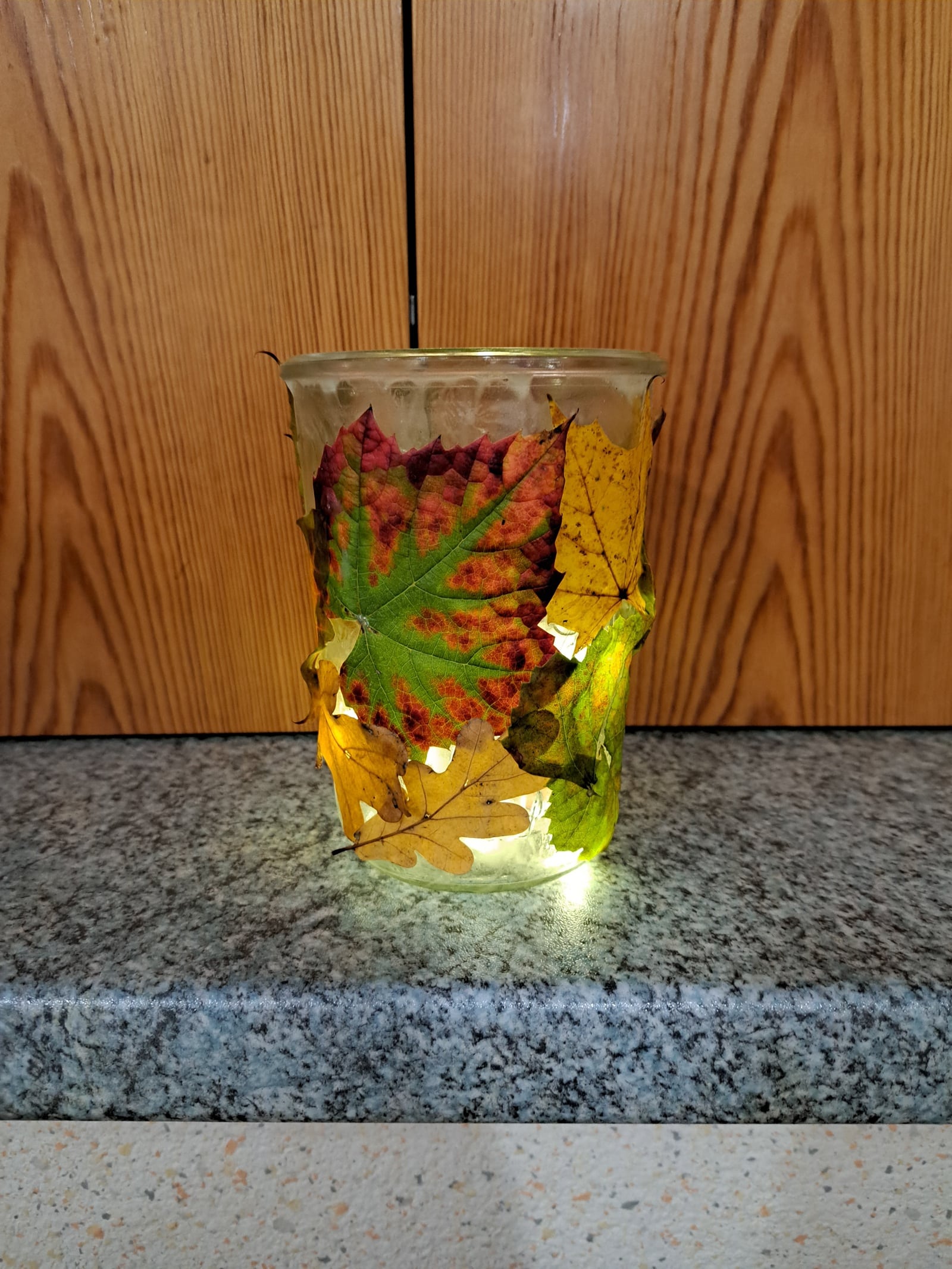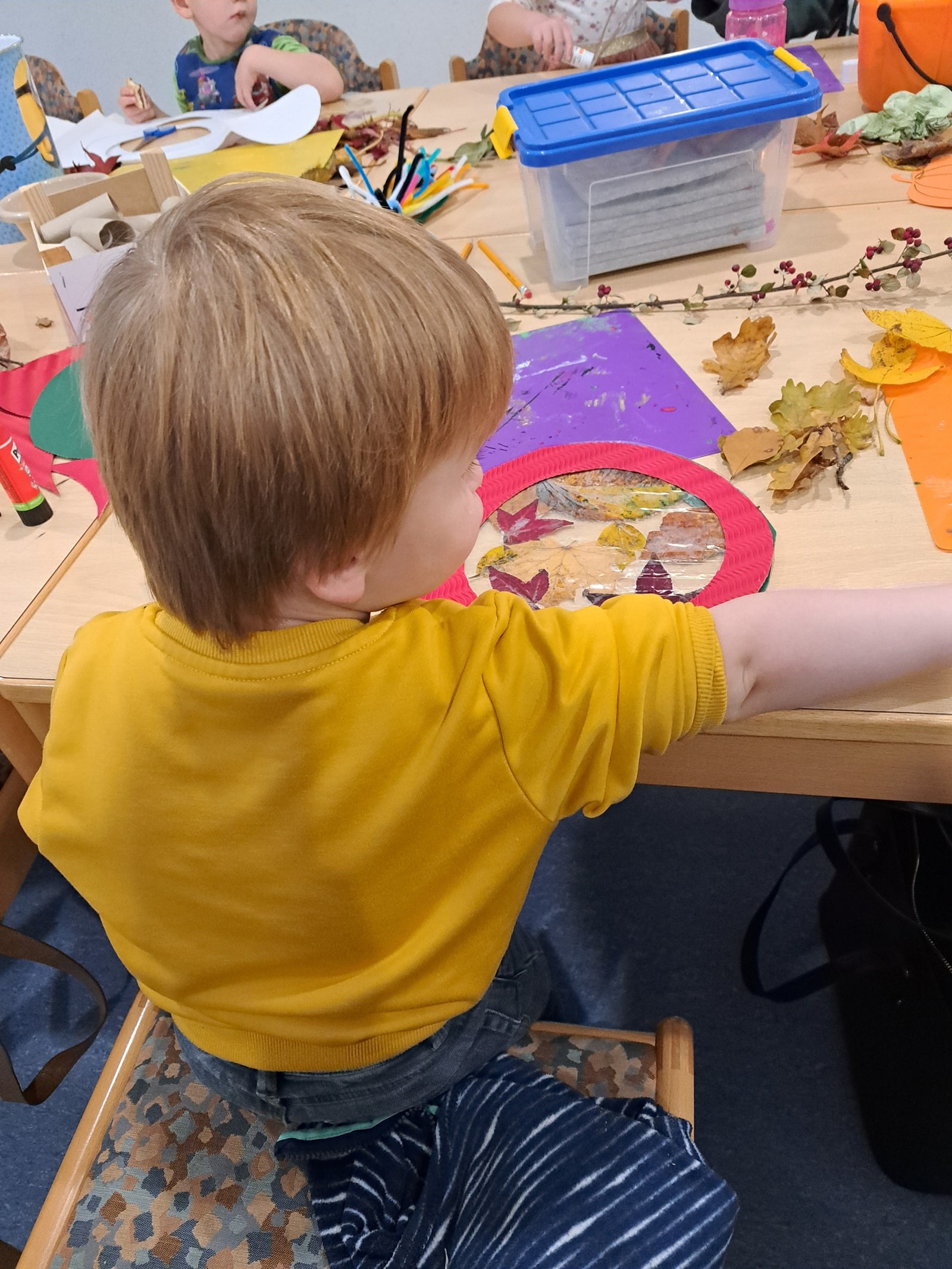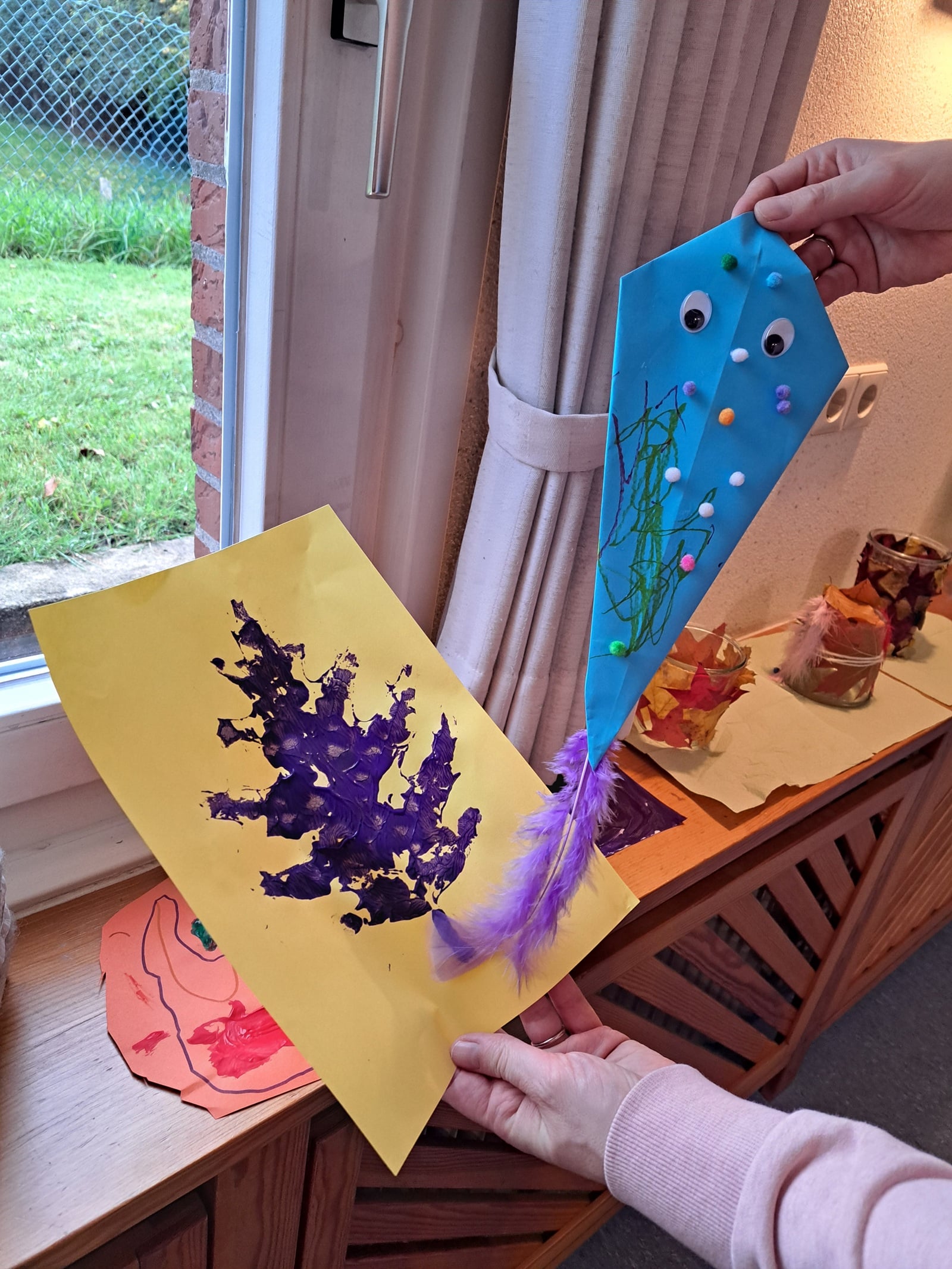 Es wurden Drachen gefaltet, Gläser mit Herbstlaub beklebt und wunderschöne Sonnenfänger gebastelt, Kaffee und Saft getrunken, sowie Kekse gegessen.